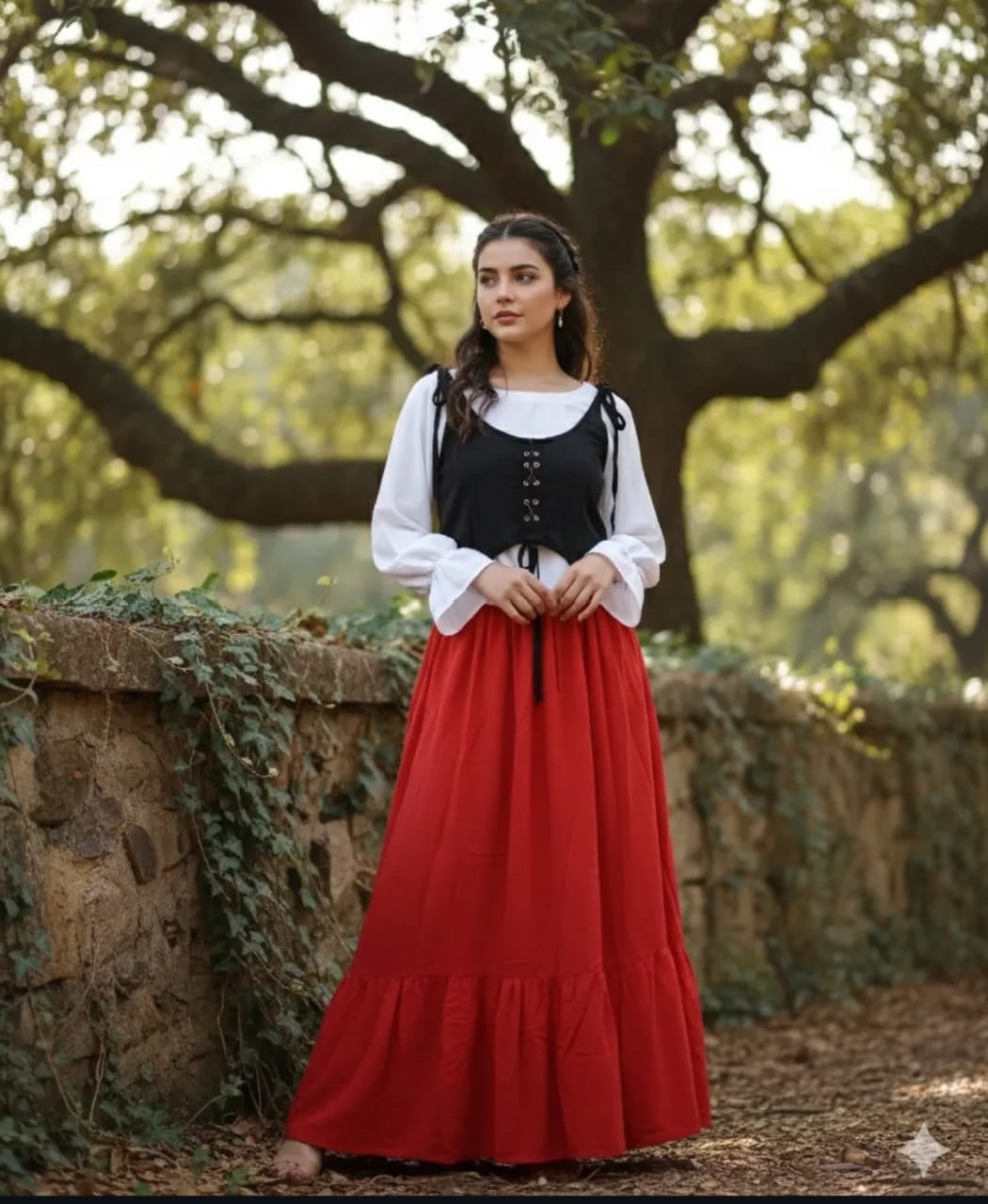 This trendy three-piece outfit features a bold red skirt paired with a clean white top and finished with a sleek black jacket. The vibrant color contrast creates a modern, striking look perfect for casual outings, meetups, and stylish everyday wear. Designed for comfort with a flattering fit, this ready-to-wear set is available in all sizes.